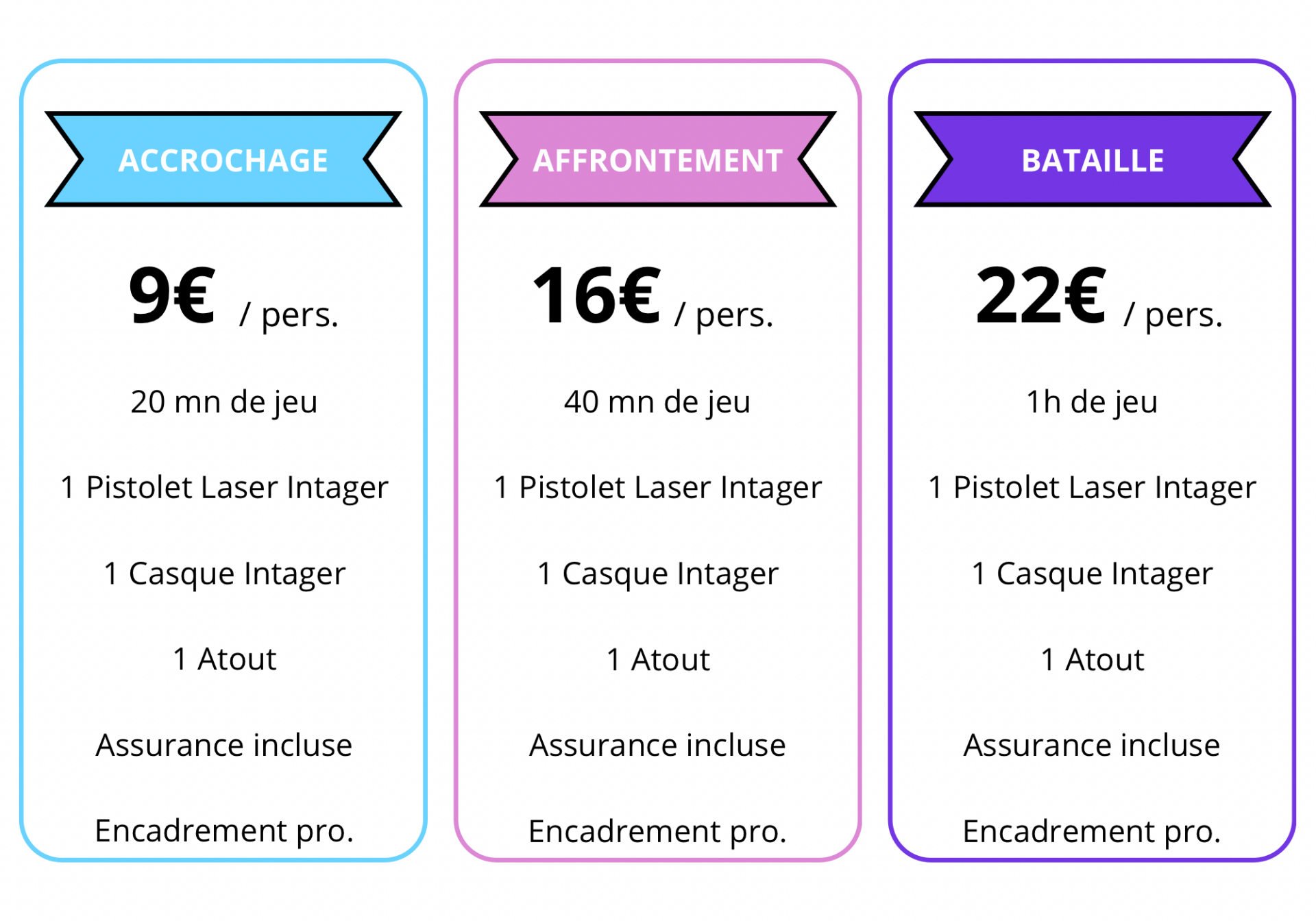 Les formules pour le laser game ?