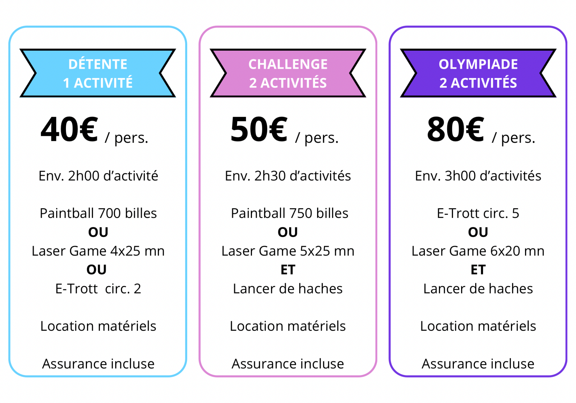 Les vraies olympiades de l'entreprise ! 3h de fun, de défis et d'esprit d'équipe à partager ! Un circuit e-trott et du lancer de haches.
